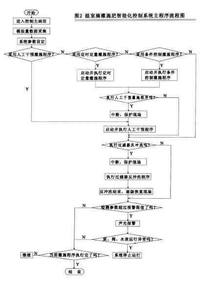營養(yǎng)液施肥控制方式也分為人工干預、定時定量、條件控制 種。當進行營養(yǎng)液施肥時,計算機系統(tǒng)根據(jù)選定的配方和已設定好的營養(yǎng)液pH、EC值,利用文丘里注肥器進行水肥混合,同時在線實時監(jiān)測混合營養(yǎng)液的pH、EC值,根據(jù)pH、EC設定值與檢測值之間的偏差來調整混肥閥的注肥頻率,在短時間內使營養(yǎng)液的檢測值和設定值之差達到允許的范圍內。當一組田間閥門施肥結束時.先打開下一組閥門,再關閉正在運行的閥門。當所有需要施肥的田間閥施肥完畢,先關閉施肥泵和水泵,再關閉正在打開的所有閥門,結束施肥控制。