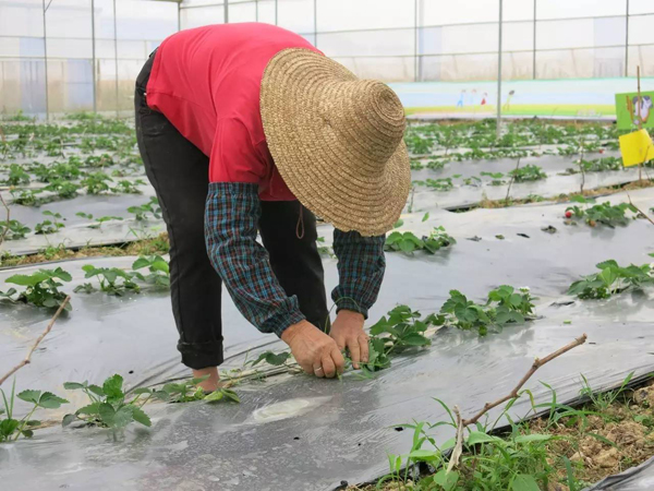 ??? 草莓苗木定植到長(zhǎng)出花蕾后,逐株人工摘除過多老葉及子芽、腋芽;開花結(jié)果后再次摘除莖部變黃的老葉、枯葉,及時(shí)摘除匍匐莖,減少營(yíng)養(yǎng)消耗,同時(shí)除去小分枝及弱小果,提高品質(zhì)。