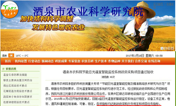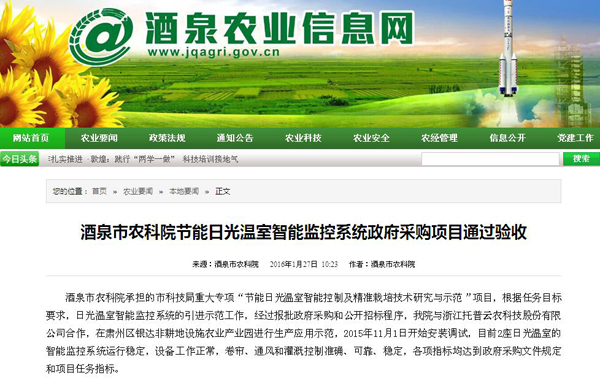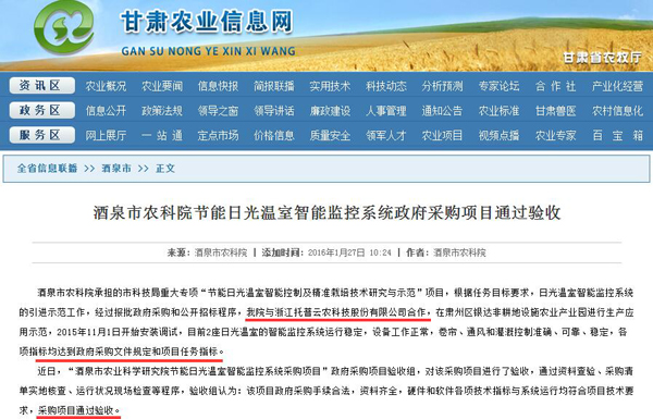 酒泉市農(nóng)科院節(jié)能日光溫室智能監(jiān)控系統(tǒng)政府采購(gòu)項(xiàng)目通過(guò)驗(yàn)收