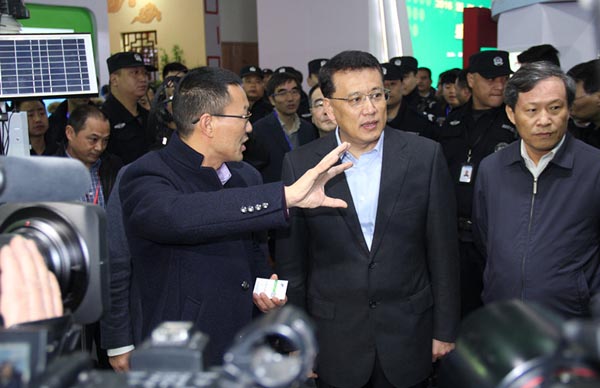 本屆展會“互聯(lián)網(wǎng)+”成托普云農(nóng)展區(qū)亮點,吸引了省領導的目光及浙江衛(wèi)視的關注。省委副書記袁家軍、省人大常委會副主任程渭山、副省長孫景淼等領導在工作人員的陪同下參觀了托普云農(nóng)展區(qū)。托普云農(nóng)董事長陳渝陽向袁家軍副書記一行介紹了公司在物聯(lián)網(wǎng)方面取得的階段性進展和研發(fā)成果,結合現(xiàn)場展示的植保信息化系統(tǒng),向袁家軍副書記一行演示了智能農(nóng)業(yè)儀器是如何“+”互聯(lián)網(wǎng)技術在全天候無人值守的情況下實現(xiàn)“四情”監(jiān)測的。直接展現(xiàn)了互聯(lián)網(wǎng)產(chǎn)業(yè)與農(nóng)業(yè)產(chǎn)業(yè)融合發(fā)展促進傳統(tǒng)農(nóng)業(yè)轉型升級的發(fā)展現(xiàn)狀。