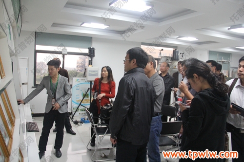 圖為:參會嘉賓在樣品室聽取托普農(nóng)業(yè)物聯(lián)網(wǎng)介紹,并表現(xiàn)出了對該系統(tǒng)的濃厚興趣