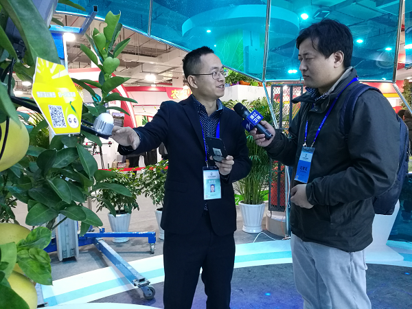 展會現(xiàn)場掛上傳感器的文旦樹“在這棵文旦樹上,我們安裝了無線葉面溫度傳感器、光照強度傳感器、果實膨大傳感器。通過這些傳感器采集傳輸?shù)臄?shù)據(jù),我們就能知道整個樹的生長秘密”。展會現(xiàn)場,現(xiàn)代農(nóng)業(yè)與信息化的互融發(fā)展,吸引浙江衛(wèi)視、杭州電視臺、蕭山日報、舟山電視臺、金華電視臺等記者前來采訪。