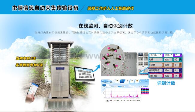 智慧型蟲情測報燈是新一代圖像識別式蟲情測報工具,可全天候工作。在無人監(jiān)管的情況下,系統(tǒng)運(yùn)用物聯(lián)網(wǎng)、互聯(lián)網(wǎng)、人工智能、大數(shù)據(jù)等技術(shù)自動采集、傳輸、分析、存儲和展示蟲情數(shù)據(jù),并提供自動化和智能化的分析和管理決策數(shù)據(jù)。通過電腦、手機(jī)等終端設(shè)備,便可對作物病蟲害實(shí)行遠(yuǎn)程實(shí)時監(jiān)測、在線識別、自動計數(shù),是植保人員的“千里眼”和“聽診器”。智慧型蟲情測報燈亦是植物保護(hù)提升工程的重要智能裝備,它與農(nóng)作物病蟲害實(shí)時監(jiān)控物聯(lián)網(wǎng)設(shè)備、蟲情信息自動采集傳輸設(shè)備、農(nóng)田小氣候自動采集傳輸設(shè)備、農(nóng)作物病菌孢子自動捕捉培養(yǎng)系統(tǒng)等設(shè)備配套使用,是農(nóng)作物病蟲疫情監(jiān)測點(diǎn)建設(shè)中必不可少的智能測報工具。