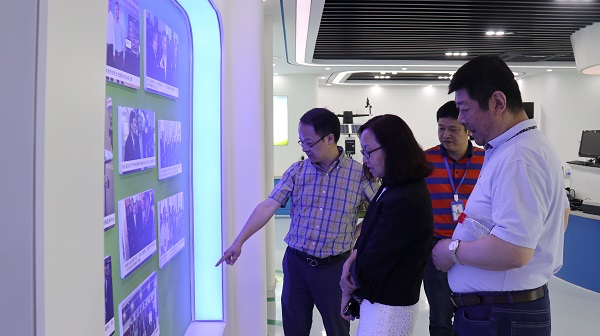 在托普云農(nóng)的展廳里,朱副總經(jīng)理向領(lǐng)導(dǎo)一行詳細匯報了托普云農(nóng)在數(shù)字農(nóng)業(yè)農(nóng)村方面取得的一些技術(shù)成果,及其在產(chǎn)業(yè)化應(yīng)用探索上的成功案例。