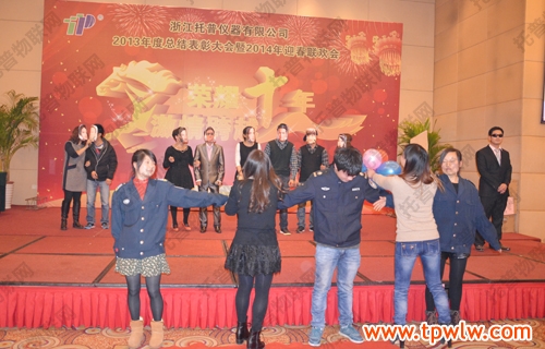 - “榮耀十年、激情跨越”之托普儀器2013年年終晚會(huì)發(fā)表日期:2014-01-27 來源:托普云農(nóng) 瀏覽次數(shù):3841次飛雪送蛇歸,駿馬迎春來。2014年1月24日六點(diǎn)整,在一片歡樂祥和的氣氛里,“榮耀十年、激情跨越”之托普儀器2013年年終晚會(huì)緩緩拉開序幕。托普儀器260余人的大家庭齊聚一堂,慶祝托普十年華誕,慶祝一年的工作成果,慶祝除舊迎新。晚會(huì)伊始,托普儀器陳渝陽總經(jīng)理上臺(tái)為本次晚會(huì)致開幕詞,為即將到來的馬年向所有托普家人致以新春的問候。