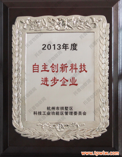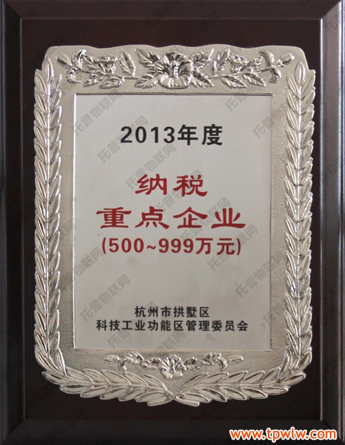 圖為:托普儀器在拱墅區(qū)2014年度工作會議中所獲獎牌