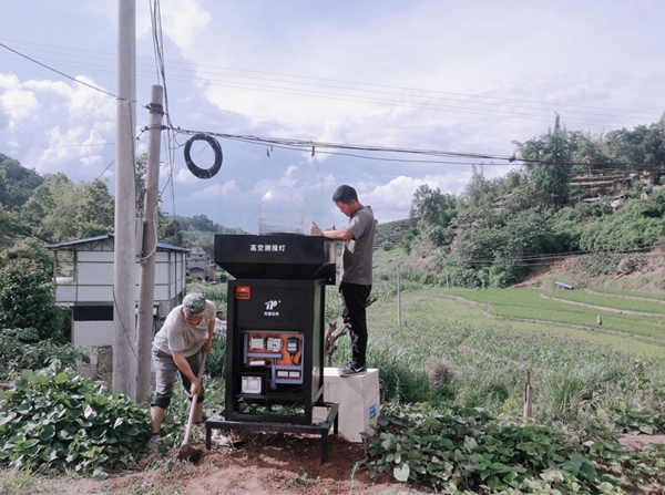 總而言之,目前我國糧食生產(chǎn)形勢依舊嚴峻,重大病蟲害的防控不容懈怠。 6月30日,托普云農(nóng)售后服務部的工作人員在云南省江城縣完成了最后一臺高空測報燈的安裝,代表著托普云農(nóng)順利完成了本次農(nóng)業(yè)農(nóng)村部下達的“三區(qū)三帶”布防任務。 高空測報燈是一款利用燈誘吸引遷飛性蟲害的測報燈,針對草地貪夜蛾的生物習性做了技術(shù)匹配與功能優(yōu)化,可在防控工作當中輔助植保人員完成草貪測報工作,為全國布防一盤棋做好基層數(shù)據(jù)采集工作。