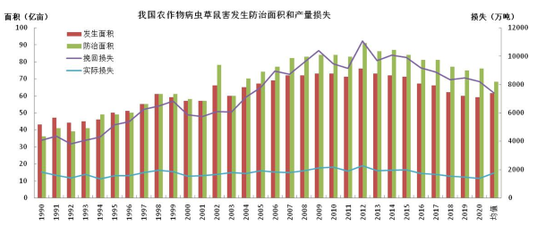 近期,全國農(nóng)技中心組織科研、教學和推廣單位專家,對2021年全國農(nóng)作物重大病蟲害發(fā)生趨勢進行分析會商。會議綜合分析了病蟲源基數(shù)、種植制度、作物布局和氣候等因素,預計2021年農(nóng)作物重大病蟲害呈重發(fā)態(tài)勢,全國發(fā)生面積14.45億畝次,同比增加19.2%。