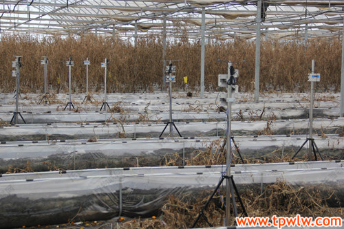 圖為:溫室大棚內(nèi)錯落分布的傳感器