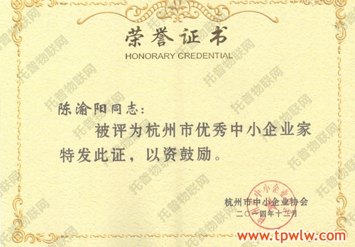 恭喜托普儀器陳渝陽董事長獲得杭州市“中小企業(yè)優(yōu)秀企業(yè)家”稱號