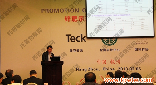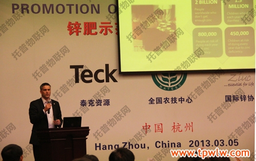 在上午的鋅肥示范推廣技術(shù)培訓(xùn)與研討會(huì)上,會(huì)議邀請(qǐng)了國(guó)際專家加拿大泰克資源安德魯·格林教授、國(guó)際鋅協(xié)會(huì)樊明憲教授、國(guó)內(nèi)專家浙江大學(xué)副教授馮英、天津市土壤肥料工作站鄭育鎖科長(zhǎng)講解了鋅肥技術(shù)以及鋅肥在中國(guó)農(nóng)業(yè)生產(chǎn)中試驗(yàn)示范研究結(jié)果。據(jù)國(guó)際鋅協(xié)會(huì)報(bào)道,全球種植谷物的土地中有50%存在缺鋅的潛在危險(xiǎn)、而我國(guó)土壤普遍缺鋅。農(nóng)作物缺鋅主要與干旱缺水、鹽堿、漬澇等農(nóng)田環(huán)境有關(guān),科學(xué)施用鋅肥是解決農(nóng)業(yè)缺鋅問(wèn)題的主要途徑。近年來(lái),隨著節(jié)水農(nóng)業(yè)的不斷發(fā)展,水肥一體化逐漸成為新的鋅肥科學(xué)施用方式??茖W(xué)施用鋅肥,能夠提高作物產(chǎn)量,改善農(nóng)產(chǎn)品品質(zhì)。為促進(jìn)鋅肥的科學(xué)施用,廣泛宣傳鋅對(duì)作物生產(chǎn)和人體健康的作用,全國(guó)農(nóng)技推廣中心與國(guó)際鋅協(xié)會(huì)、加拿大泰克資源合作開展鋅肥示范推廣工作,并大力培養(yǎng)應(yīng)用技術(shù)人才、開展田間技術(shù)指導(dǎo)。