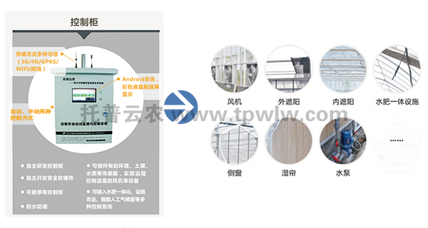 通過(guò)物聯(lián)網(wǎng)系統(tǒng)可連接傳感器采集空氣溫濕度、二氧化碳、光照強(qiáng)度、風(fēng)速風(fēng)向、降雨量、土壤溫濕度、土壤水分、養(yǎng)分含量(N、P、K)、PH值以及植物生理生態(tài)指標(biāo)(葉面積指數(shù)、果實(shí)膨大、莖桿微變化、葉濕、葉溫、水勢(shì)、莖流、呼吸等)來(lái)獲得作物生長(zhǎng)的最佳條件,并根據(jù)參數(shù)變化實(shí)時(shí)調(diào)控或自動(dòng)控制溫控系統(tǒng)、灌溉系統(tǒng)等。