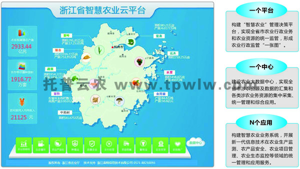 浙江省智慧農業(yè)云平臺簡稱智慧農業(yè)云平臺,旨在通過農業(yè)物聯(lián)網技術、大數(shù)據(jù)、3S等信息化技術有效整合省市縣各級涉農資源,以頂層設計方式建成“一個平臺一個中心N個應用”,匯聚農業(yè)產業(yè)、農業(yè)“兩區(qū)”、物聯(lián)網、植保、農機、畜牧、農資、農經、科教等各級農業(yè)業(yè)務應用及數(shù)據(jù),形成“大農業(yè)”數(shù)據(jù)中心,構建互聯(lián)共享的“互聯(lián)網+農業(yè)”信息服務體系,以最終實現(xiàn)科學指導農業(yè)生產經營管理、政府決策監(jiān)管和社會公眾服務。