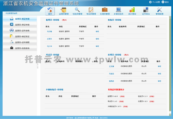 2、農(nóng)機(jī)辦證系統(tǒng):
