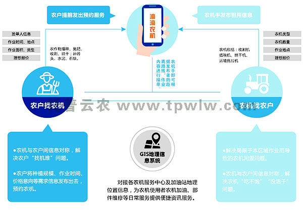 ?????? 針對(duì)現(xiàn)今農(nóng)機(jī)與農(nóng)戶間信息不對(duì)稱,許多農(nóng)機(jī)僅局限于本合作社或本區(qū)域作業(yè),農(nóng)戶無法及時(shí)找到農(nóng)機(jī)手進(jìn)行耕收等問題,托普云農(nóng)開發(fā)了“滴滴農(nóng)機(jī)”APP,通過預(yù)約服務(wù)方式,農(nóng)戶將作業(yè)內(nèi)容等需求信息發(fā)布后,附近農(nóng)機(jī)手即可直接接單,從而有效解決農(nóng)機(jī)閑置問題,提升耕種收割效率。同時(shí)借助“滴滴農(nóng)機(jī)”手機(jī)APP可拓展更多農(nóng)業(yè)服務(wù)內(nèi)容,包括農(nóng)資購(gòu)買、農(nóng)產(chǎn)品銷售、金融等服務(wù)。